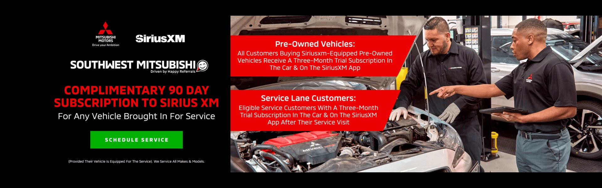 We offer many services, including oil changes, tire rotations, brake repairs, engine diagnostics, and more. Our service center is equipped with state-of-the-art tools and diagnostic equipment, allowing us to quickly and accurately diagnose and repair any issues with your vehicle. Additionally, we only use genuine Mitsubishi parts and accessories, ensuring your vehicle is always running at its best.